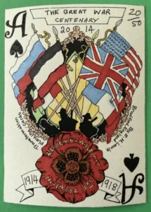 The 51 cards came from the Cotta Almanacs of 1805 [11 cards], 1806 [25cards] and 1807 [15] plus one original design – the nine of hearts