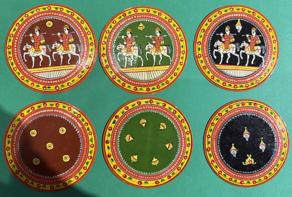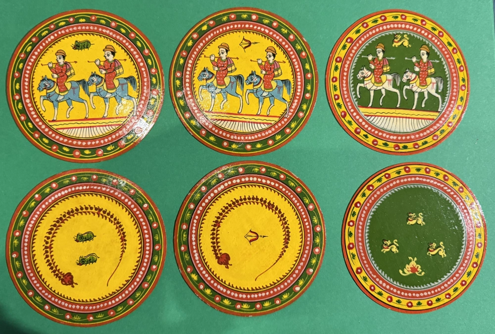 Dashavatara means the ten incarnations of the God – Vishnu resulting in 120 cards but there was desire for more suits so the sons of Vishnu were added – Ganesh and Karttikrya – the Extended Dashavtara
