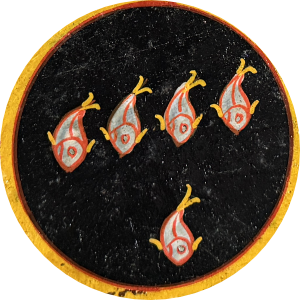 The fifth suit, instead, is non-standard; it is called Guru (“round, around”), and it features comma-shaped strokes arranged in a circular pattern, almost forming a whirl.